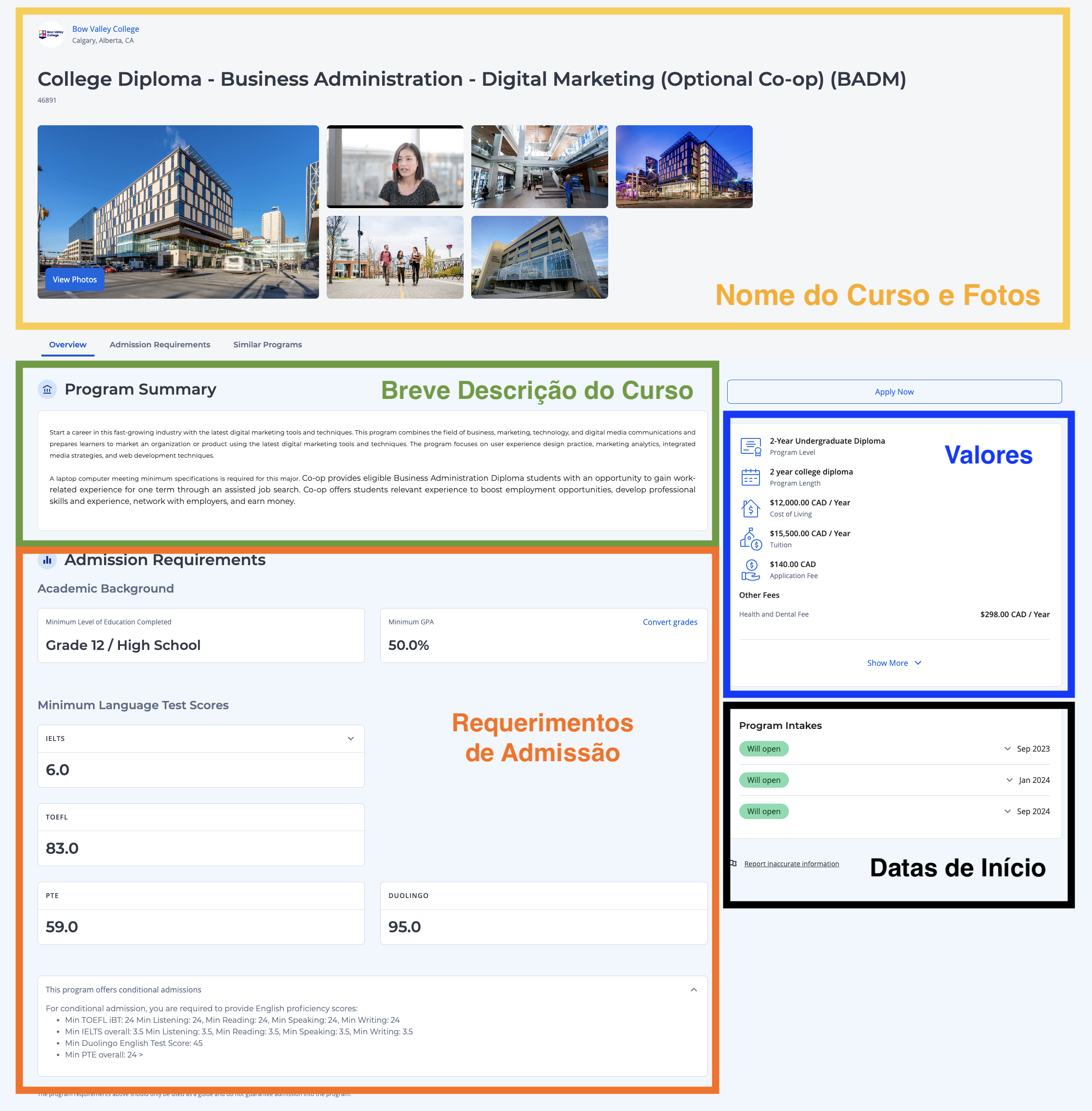 Chegamos finalmente na etapa onde você terá acesso aos detalhes dos programas de estudo e poderá dessa forma escolher o curso / instituição que melhor atenda aos seus planos de estudo no Canadá.