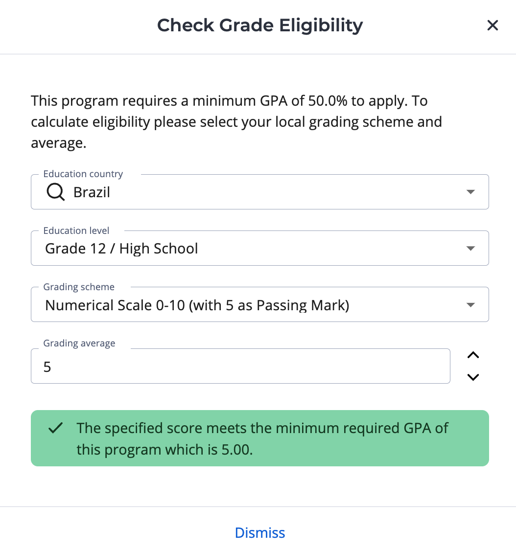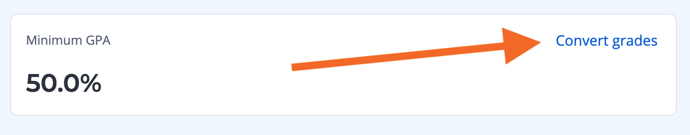 No quadrado "Minimum GPA" (nota mínima que você precisa ter obtido no Ensino Medio) vamos clicar em "Convert Grades" (Imagem abaixo)