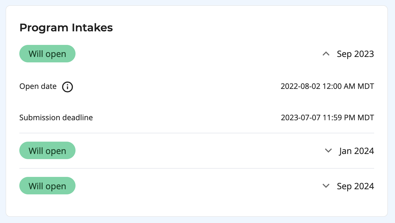 - Will Open: Inscrições serão abertas e você pode checar a data que elas vão abrir