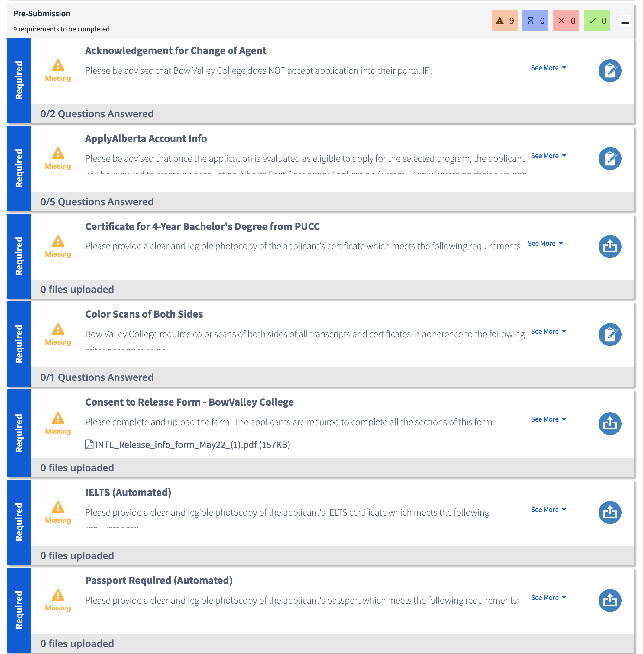 Esteja ciente de que cada curso e instituição de ensino no Canadá possui regras e requisitos específicos. Dessa forma, os itens neste campo podem variar de acordo com cada caso (porém muitos deles se repetem ou são bem parecidos).